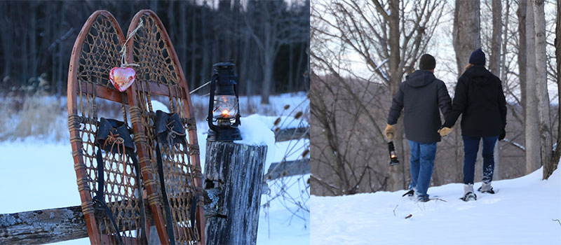More Details: Two sessions are available: Session 1: 5:00 – 6:30pm or Session 2: 6:30 – 8:00pm. Space is limited to 20 couples per session. There are two, hour-long sessions for this event with separate registrations for each. Pre-registration is required and registration is per couple. Snowshoes and lanterns are provided. The snowshoe path follows our Wagon, Harrison, Faust Garden, Arboretum, and Pioneer Lifestyle trails. These trails are generally flat with some minor inclines. The trail surface may be snow-covered and uneven. Total distance is approximately ½ mile.